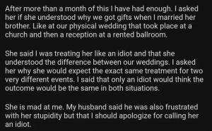 I felt I needed to correct them that she actually lost neither of us, because if the miscarriage, she lost us because of her actions since and her blaming the miscarriage is part of a pattern of behaviour. (I didn’t go into details: just said “actually she lost Scott because she cheated on him, and she lost me because she uninvited one of my bridesmaids, without my knowing because she is pregnant)