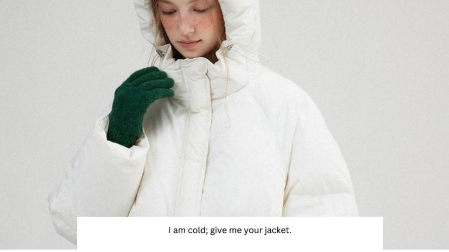 Later, she turned to the guy and told him to lend her his jacket. He said no, because he was comfortable now and did not want to take it off.