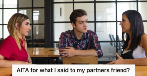 During a get-together, his girlfriend’s friend started criticizing him and giving unsolicited advice.
